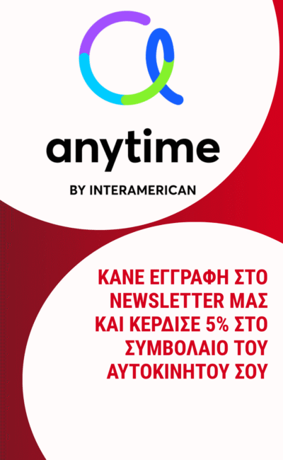 Με την εγγραφή στο Newsletter μας θα κερδίσετε άμεσα 5% στο συμβόλαιο του αυτοκινήτου σας στην Anytime.